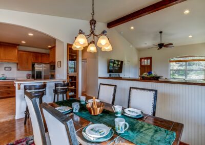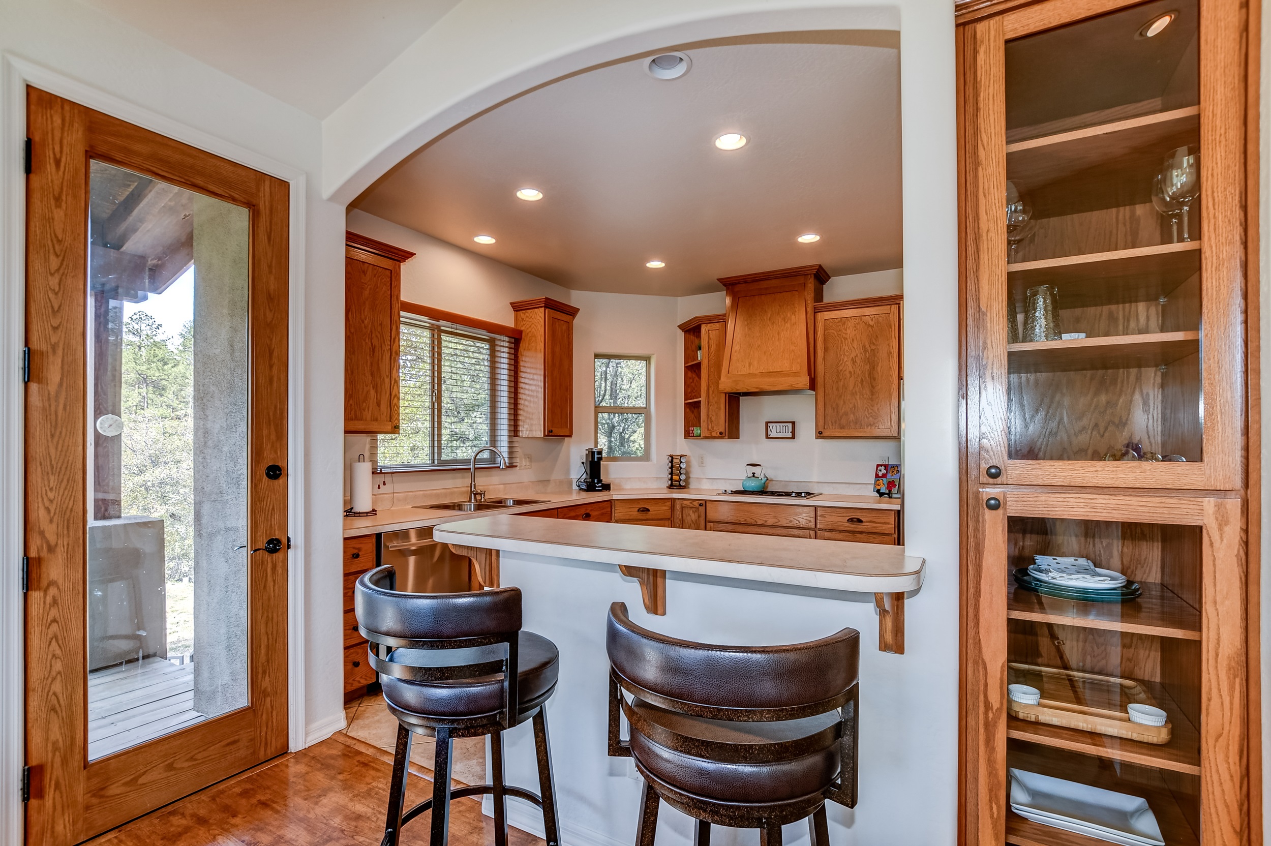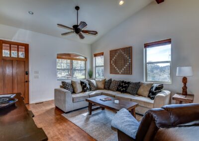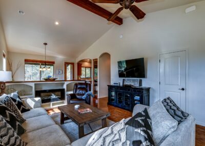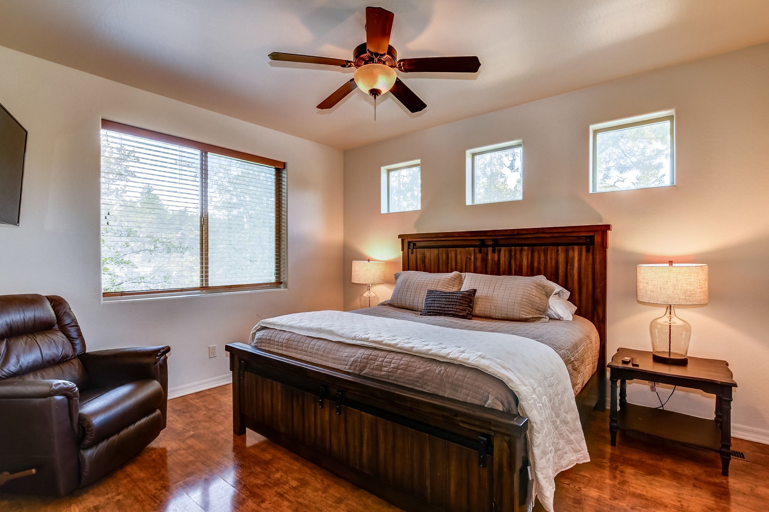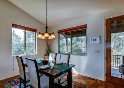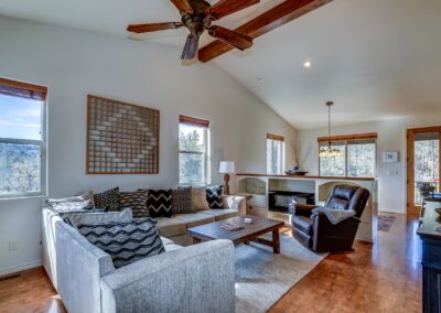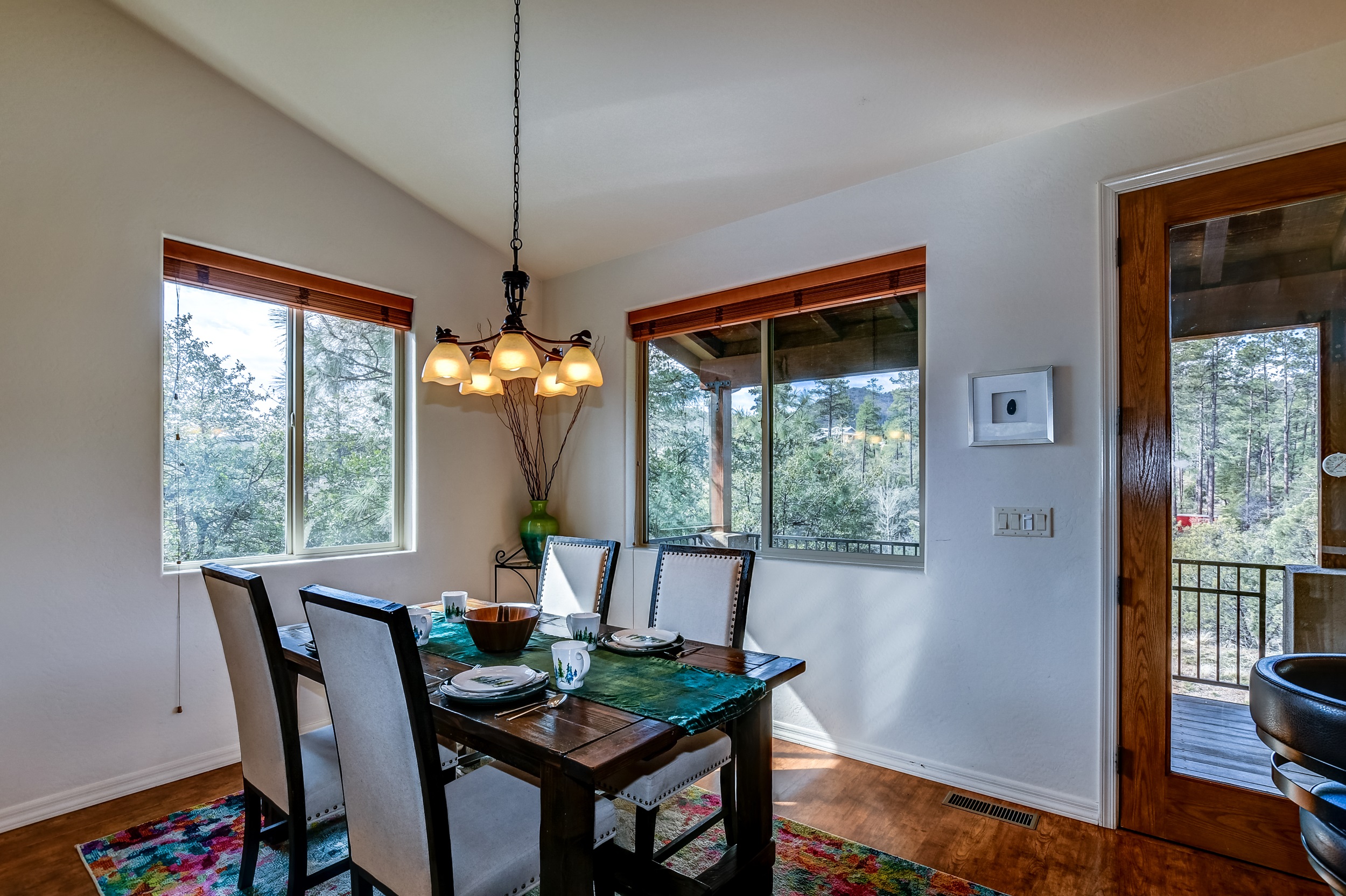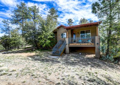 This modern mountain home is a perfect place to relax and enjoy the beauty of nature. Surrounded by tall pine trees and located near hiking trails, this is an ideal spot to enjoy the outdoors.